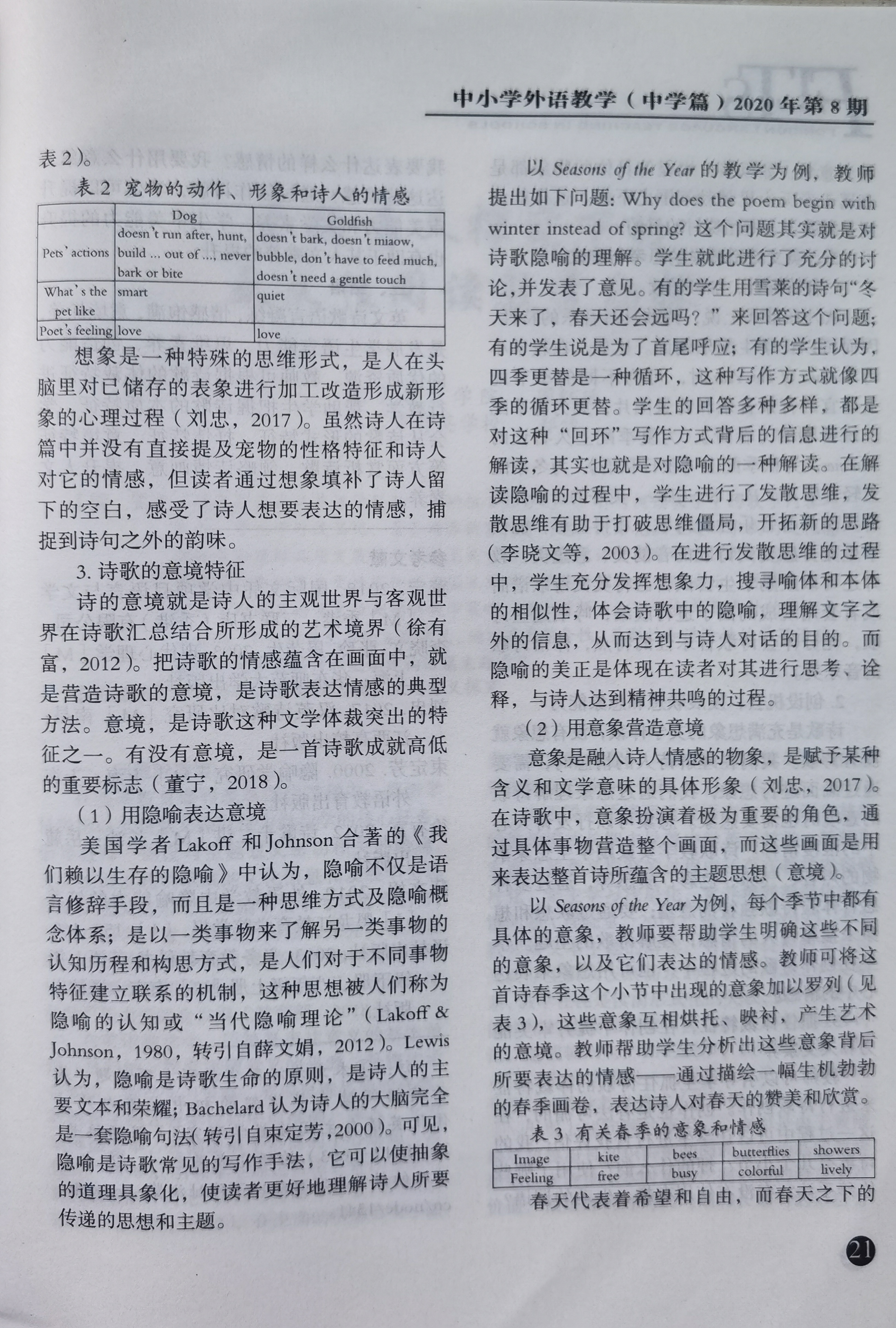 培育室领衔人作为第二作者撰写的《从体裁特征角度谈初中英语诗歌教学》2020.8发表于核心期刊《中小学外语教学》上。