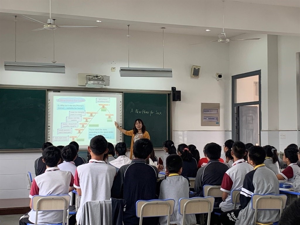 秋日的暖阳抵不过教研的火热。在老师们的集体讨论与期待中,丁佳燕老师的黑布林阅读课堂的铃声如期打响。课堂先以“阅读圈”的各种角色呈现把学生带入“文学圈”。主题为“A New Home for Socks”,先利用图片、文字和任务型问题等方式帮助学生了解了故事梗概,理清了故事发展的两条明线。最后通过主题性问题引导,进行深度阅读,让学生体会到故事背后的育人价值,同时开放性的提问让学生能从多角度看待问题,提升思维品质。丁老师以巧妙流畅的教学设计和过程精彩纷呈地展现了一堂皆具阅读技巧与思维深度的阅读课,课前课堂有效地整合,恰当的教学策略,清晰的教学思路,让在座的同学和老师们沉浸于课堂之中。