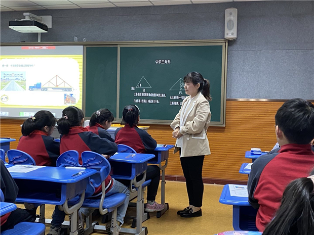 来自小河中心小学的钱绍军老师和龙城小学的陆静老师,他们带着前期的思考,研读教材内容的内涵和实质,精心设计丰富的学习活动,呈现了两节精彩的数学课《三角形的认识》。