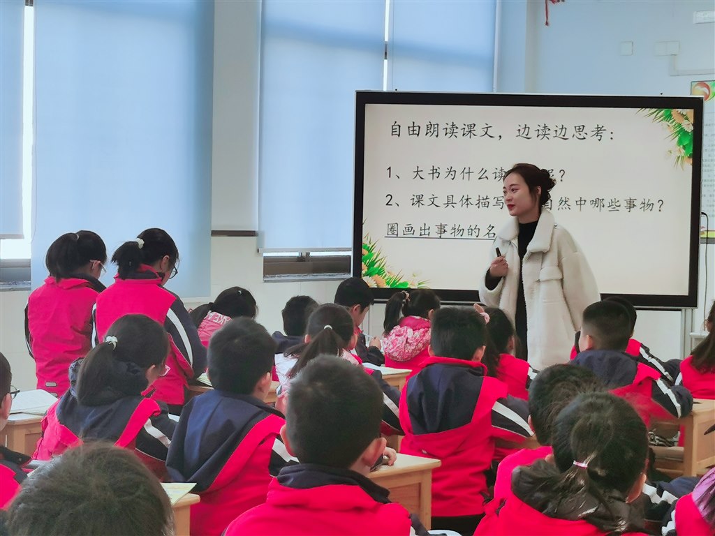 胡静静老师执教三上《读不完的大书》,紧扣语文要素和学生言说能力培养。胡老师先以“是什么、为什么、有什么”引导孩子们梳理文章;随后学生在自主发现的基础上积累文章生动有趣的语言;紧接着关注精彩的段落,结合补充的视频资料指导学生围绕“喜爱的动物”展开言说。胡老师优美的课堂语言引领着听课师生走进了自然之美。