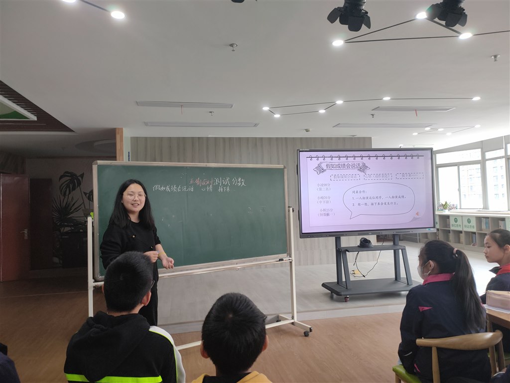 三井实验小学杨芸执教《《正确面对考试成绩》。在暖身游戏“数字”中感受数字在不同情境下的意义,当“数字”代表成绩时,人都会感到焦虑情绪。随后,杨老师引导学生通过心理小剧引导学生面对不同分数的心情、想法,探寻取得成绩需要发愤图强,不能骄傲自满。课堂在教师的引导下,以活动为载体,学生在活动中有感受有体验。