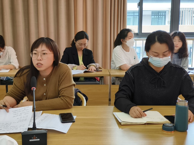 课堂展示之后两位老师进行了单元说课,并谈了自己的困惑。基于听课感受,老师们各抒己见,对落实新课标的情况、教学内容、评价形式等方面进行了深入探讨。